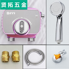 定制恒温阀明装太阳能热水器冷热混水阀家用智能恒温调节淋浴花洒套装 红色阀+圆形增压手喷套装+黄铜对丝【?】