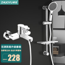 卓浴卫浴花洒简易升降支架带置物架精铜龙头卫生间浴室一键切换三联水龙头冷热混水阀暗装淋浴花洒套装 【加厚铜主体】自由升降-自洁增压大出水