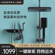 德国雅格纳(VAGERRA)黑色淋浴花洒套装手持增压花洒喷头除垢顶喷花洒莲蓬头精铜主体淋浴器置物架