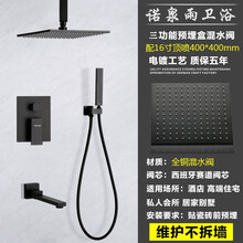 诺泉雨卫浴黑色热熔暗装入墙式花洒暗埋隐藏嵌入式吸顶淋浴套装冷热全铜混水阀 吊顶式16寸加厚顶喷热熔款