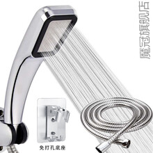 花酒喷头花洒头 单头加压花洒喷头高压花洒喷头方形增压花洒喷头套装加压热水器淋浴喷头莲蓬头花酒沐浴 电镀300孔喷头+1.5管+免打孔座