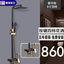 顾家花洒家居卫浴 黑金淋浴花洒套装恒温水龙头沐浴器莲蓬头浴室增压花洒晒淋雨喷头器套装 【豪华款】按键四档黑金