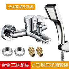 淋浴龙头浴室开关三联冷热水龙头暗装洗澡沐浴混水阀电热水器花洒 合金三联龙头(方形增压花洒套装)
