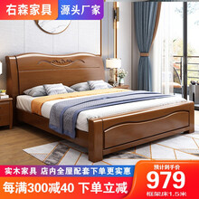 右森 床 实木床1.8米2米双人大床 现代简约中式1.5米高箱储物主卧室婚床 1.8*2.0米框架结构 床+2个床头柜