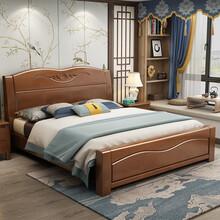 风之意 床 实木床现代中式床1.5米1.8米双人床高箱储物床卧室家具ZS-813 单床(胡桃色) 1500*2000(框架床)