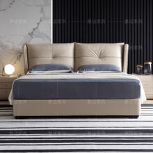 慕适 床 头层真皮床 意式皮艺床 北欧双人床 成套家具软体婚床公寓床 黄色真皮床 1.5*2米