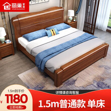 丽巢 床 现代中式胡桃木实木床主卧床双人床1.5米1.8米大床婚床卧室家具 6636 普通款 单床 1800*2000