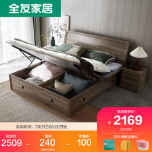 全友家私双人床新中式北欧实木框架高箱床1.5米1.8M储物多功能卧室家具橡灰木色121206B(闪) 橡灰木色床1.8m