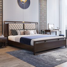 爱惟森 新中式实木床1.8米古典轻奢软包绒布超纤皮软靠双人床1.5M卧室现代简约家具 Y20 实木床配加厚床板 1800*2000框架床