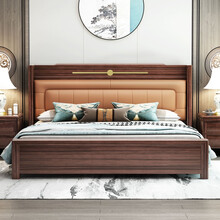E木E家 木家 床 实木床 北欧现代高箱储物床 1.5米1.8米 仿真皮单人双人床卧室家具 1500*2000【框架床】 实木床