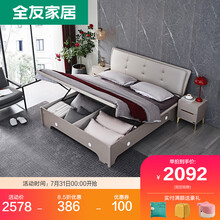 全友家私双人床 软包床 现代简约板木床 轻奢皮艺靠背大床 主卧室收纳储物床126003(闪) 1.5m高箱床