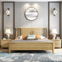 全森亦品现代简约新中式床实木双人床1.8米1.5m卧室小户型婚床 原木色单床 1500mm*2000mm 框架结构