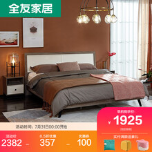全友家私床 轻奢双人床橡木纹饰面 卧室框架床后倾床屏现代北欧125605(闪) 1.5单床+床头柜*1+105001床垫