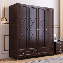 汇明创家樱桃木美式轻奢实木衣柜四门五门现代简约大衣橱卧室成套组合家具 衣柜【黑胡桃色】 4门