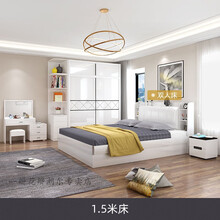 白色烤漆现代简约卧室成套家具小户型双人床衣柜组合套装主卧婚房 1.5米床 2门
