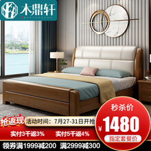 木鼎轩 床 实木床现代中式1.8米单人床1.5米双人床实木婚床现代橡胶木床卧室家具组合 单床【颜色尺寸备注】 标准款