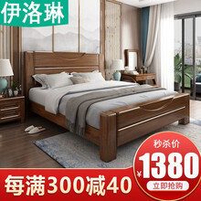 伊洛琳 胡桃木实木床储物床主卧1.8米新中式双人床1.5m简约现代抽屉床 卧室家具 胡桃木单床 1.5*2.0m框架结构