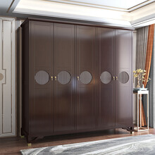 新府巧匠 新中式风格卧室成套家具橡胶木实木框架三四五门组合衣橱大衣柜 三门衣柜 4门 整装
