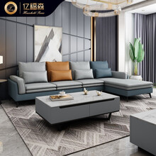 亿福森 简约现代布艺沙发客厅组合北欧轻奢大小户型高档科技布沙发7字型1+2+3成套组合家具 双人位+单人位+贵妃位 3.52米 定金