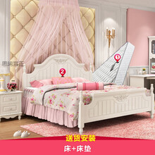 全套卧室成套家具套装组合全屋欧式主卧床实木1.8衣柜韩式公主床 床+床垫 组装式箱体床