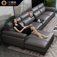 亿福森 真皮沙发进口牛皮艺沙发组合大小户型中厚皮沙发客厅整装家具实木框架成套沙发组合家具 【标准款】单扶+双扶 2.89米 定金