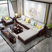金户美居 沙发 新中式全实木沙发组合别墅沙发转角贵妃储物高档客厅禅意成套家具 配套大茶几