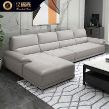 亿福森 北欧头层牛皮沙发真皮沙发客厅简约现代大小户型多人位实木皮艺沙发1+2+3成套组合沙发 【海绵版】双人位+单人位+贵妃位 3.30米 定金