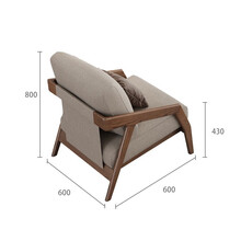 北欧沙发全实木简约现代日式胡桃色客厅组合家具成套新中式原木纯实木休闲小户型布艺白蜡木沙发 单人位