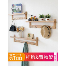 挂衣板 墙挂实木 挂衣架壁挂墙上卧室衣架墙壁式衣服衣帽家用进门口入户玄关置物架 成套购买更优惠默认本色三件套