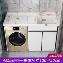 东鹏阳台定制洗衣机柜子组台柜子浴室柜伴侣洗衣槽台盆一体带搓衣板洗衣池太空铝洗衣机柜组合 1.40米~1.50米-双开门 免拉手-爵士白