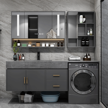 寅森(YINSEN)轻奢橡木阳台洗衣机柜组合岩板一体台盆浴室柜轻奢北欧洗脸盆卫生间洗漱台 1.4米岩板一体盆+智能镜柜