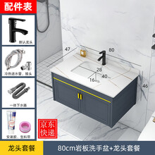 幻鲨 岩板浴室柜组合现代简约洗手盆洗脸盆一体洗手台卫浴洗漱台 80轻奢蓝C白岩板+龙头