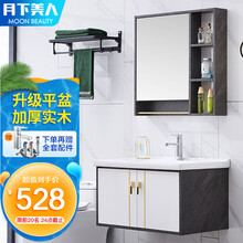 月下美人实木浴室柜洗脸台洗手台卫浴柜镜柜面盆洗漱台现代简约吊柜卫生间洗脸盆洗手盆柜洗手池组合套装 储物镜柜-80cm-【升级平盆-厂家力荐】