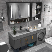 艾卓 定制 阳台洗衣机洗脸盆一体柜组合轻奢岩板陶瓷盆浴室柜卫生间洗漱洗手台 120公分岩板陶瓷盆+普通镜柜