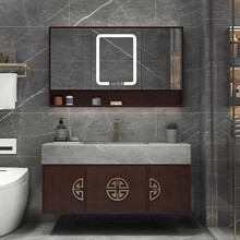迎客吉(YINGKEJI)轻奢新中式岩板浴室柜洗手洗脸盆组合卫生间橡木洗手台盆柜实木卫浴柜吊柜 140CM橡木+岩板面