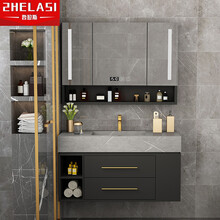 岩板一体台盆橡木浴室柜组合北欧轻奢智能洗手池卫生间简约洗漱台洗脸盆柜 橡木+智能镜柜 1.3米
