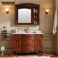 寅森(YINSEN) 欧式圆形浴室柜大理石洗手洗脸台盆柜定制红橡木落地仿古实木洗漱台组合 仿古黄棕色镜柜款 1.1米橡木 米黄台面