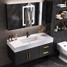 【抖音同款】嘉虹岩板一体盆浴室柜实木轻奢大理石一体台盆柜组合洗手洗脸洗漱盆台池带镜柜卫生间洗面盆新款 设计师定制【定金】