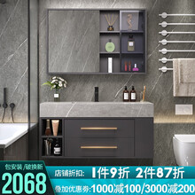 嘉虹 智能感应岩板一体盆浴室柜组合卫生间洗漱台实木洗手池洗脸盆简约卫浴柜【接受多种定制】 B2-80CM储物镜柜+岩板一体盆
