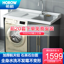 希箭/HOROW太空铝洗衣机柜带搓板台盆龙头组合柜阳台洗衣机浴室柜洗衣柜组合套装 梵华平行盆-120cm(左右可选,默认发右盆)