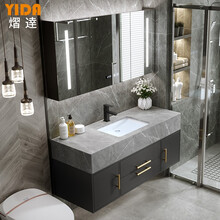 熠逹(YIDA) 岩板一体台盆浴室柜现代简约轻奢北欧实木洗脸洗手台盆柜组合卫生间洗漱台 110cm(智能方镜+阿玛尼灰岩板陶瓷盆)