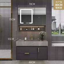 译佳 岩板一体盆浴室柜套装北欧轻奢现代智能洗手池洗脸台盆柜组合卫生间洗漱台 0.8米(主柜+智能镜柜)岩板一体盆