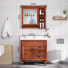 诗依迪卫浴北欧浴室柜组合现代简约碳纤维卫浴柜洗漱台卫生间 落地柜洗脸盆洗手台盆柜镜柜组合套装落地式 70CM黄花梨