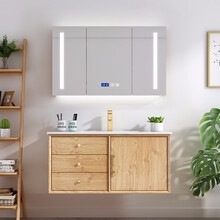 镱朗 北欧实木浴室柜组合套装 洗手台日式洗脸池洗手盆现代简约洗漱台盆卫生间悬挂式卫浴台下盆岩板可定制 100cm智能镜柜款(亮灯、时间、除雾)...