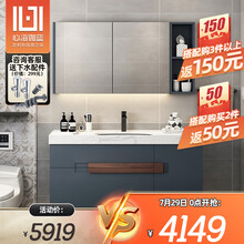 心海伽蓝 橡木实木浴室柜落地组合现代简约 卫生间大理石浴室柜洗漱台脸盆柜卫浴洗手盆柜镜柜组合4358 1.2米挂墙