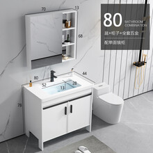 日本津野/JINYE家用浴室柜组合太空铝卫生间落地式洗手盆洗脸盆柜厕所洗漱台大小户型洗手间洗面池阳台 8044落地盆柜白(龙头套餐)+8005白镜柜