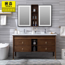 寅森(YINSEN)轻奢新中式橡木浴室柜组合落地式实木双盆卫浴柜卫生间洗脸洗手池洗漱台面盆柜智能镜柜 浅胡桃色【颜色可订制】+智能镜柜 170CM橡木