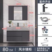 蝶中飞卫浴 智能风水镜柜浴室柜组合轻奢北欧现代简约大理石岩板陶瓷盆洗漱台套装洗手洗脸盆套装除雾洁具小 0.8米岩板陶瓷盆/风水镜柜