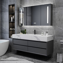 迎客吉(YINGKEJI)现代岩板一体盆浴室柜组合简约智能轻奢洗漱台卫生间洗手池洗脸盆 180公分智能镜柜(岩板一体盆)