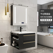 澳鲨AOOSAA智能浴室柜镜柜北欧轻奢洗漱台洗手台洗手盆卫生间洗脸盆卫浴柜镜柜套装三色可选 黑色-61厘米【左右可选】 储物镜柜(半镜面